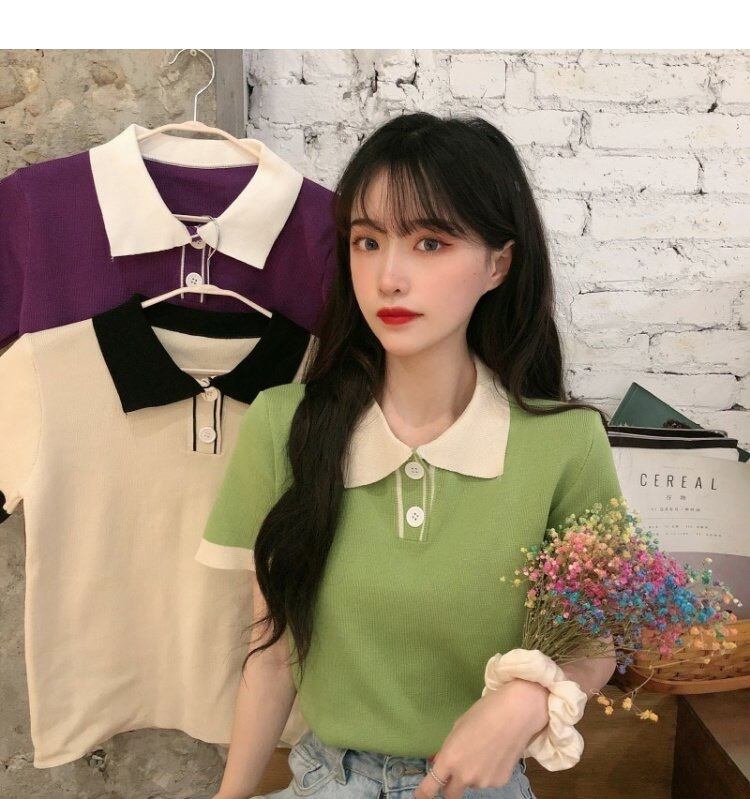 【レディース】トップス ライトグリーン 襟付きTシャツ