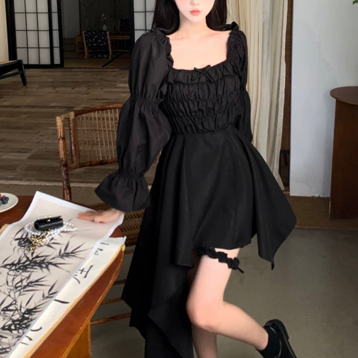 【レディース】ドレス シンプル ロングスリーブ オフショルショートドレス