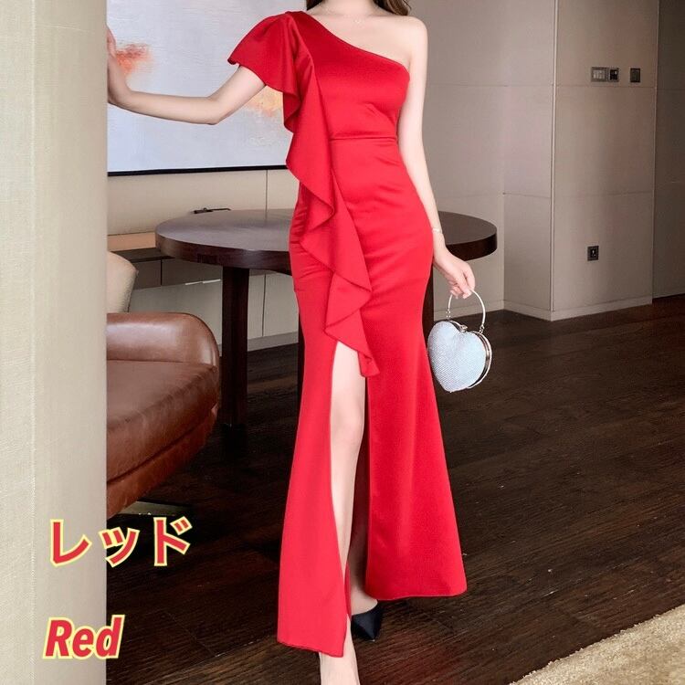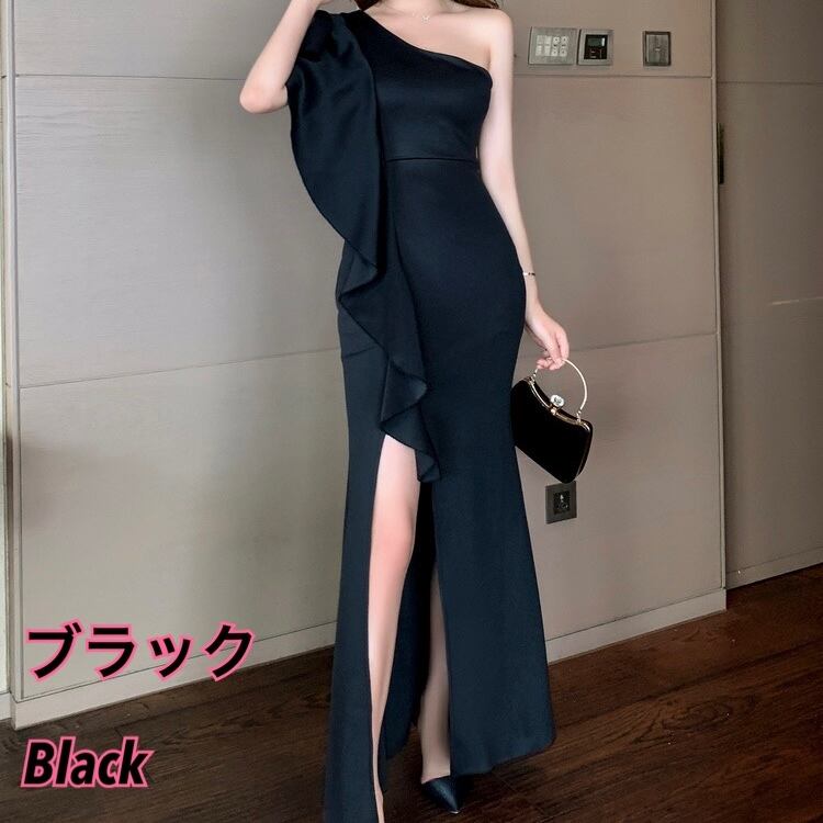 【レディース】ドレス ワンショルダー フリルロングドレス