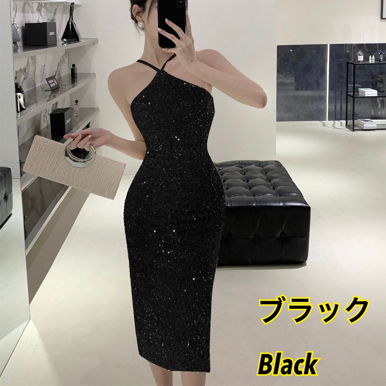 【レディース】ドレス スパンコール ボディコンミディアムドレス