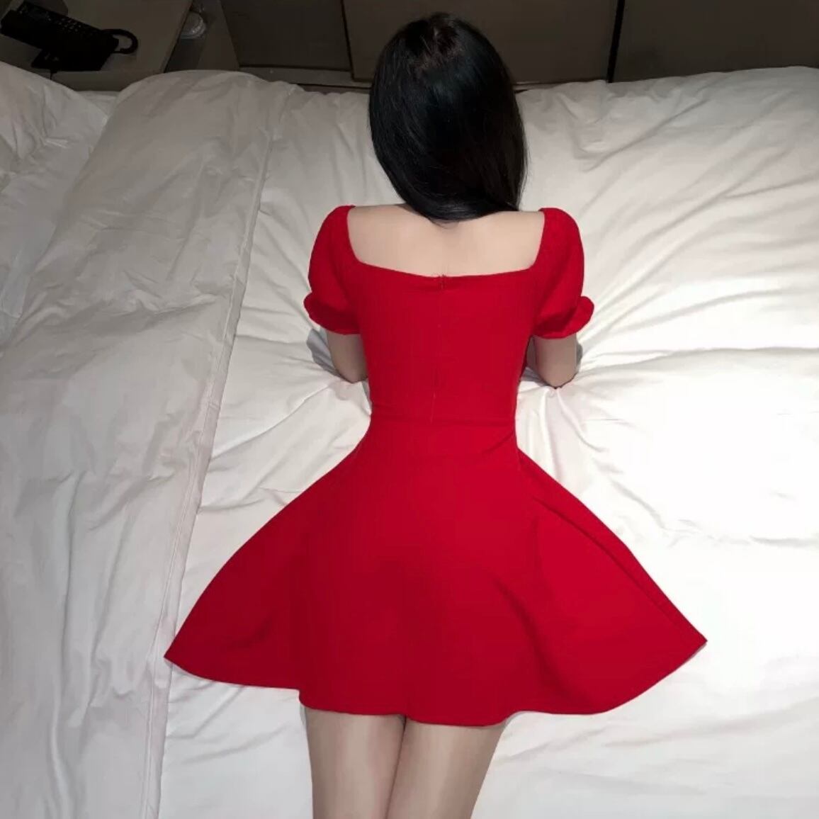 【レディース】パーティドレス フロントリボン フレア ショートドレス