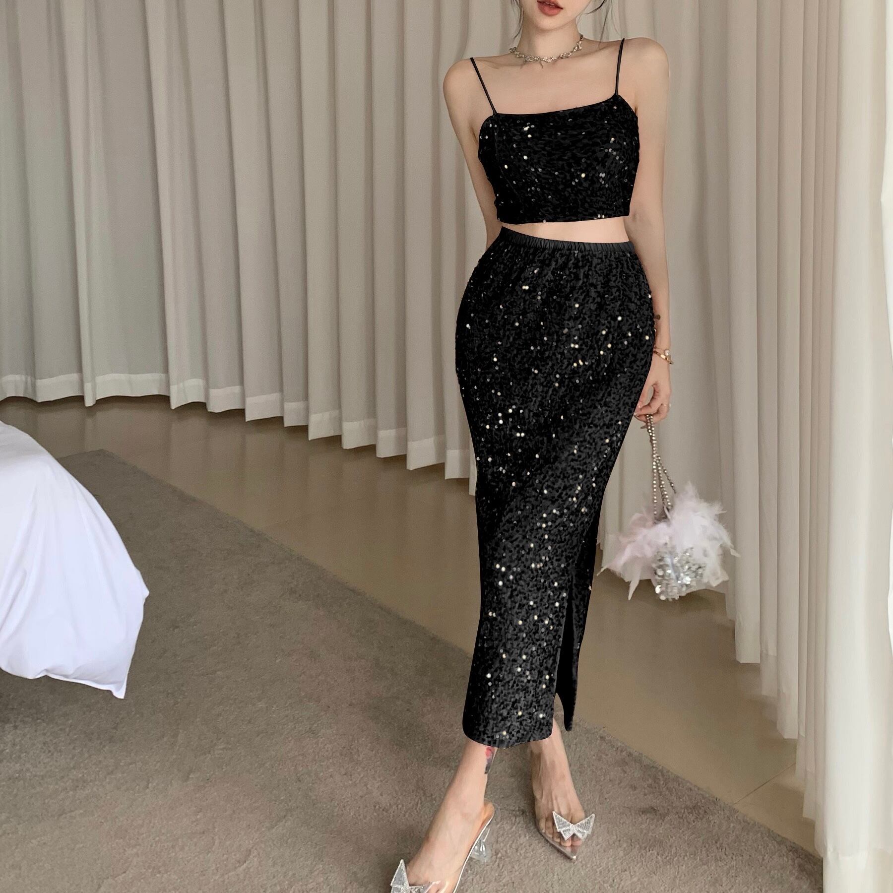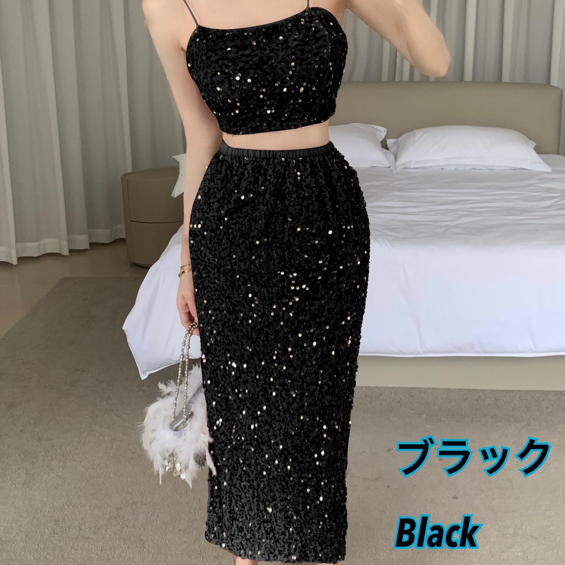【レディース】パーティドレス セットアップ スパンコール ロングスカート