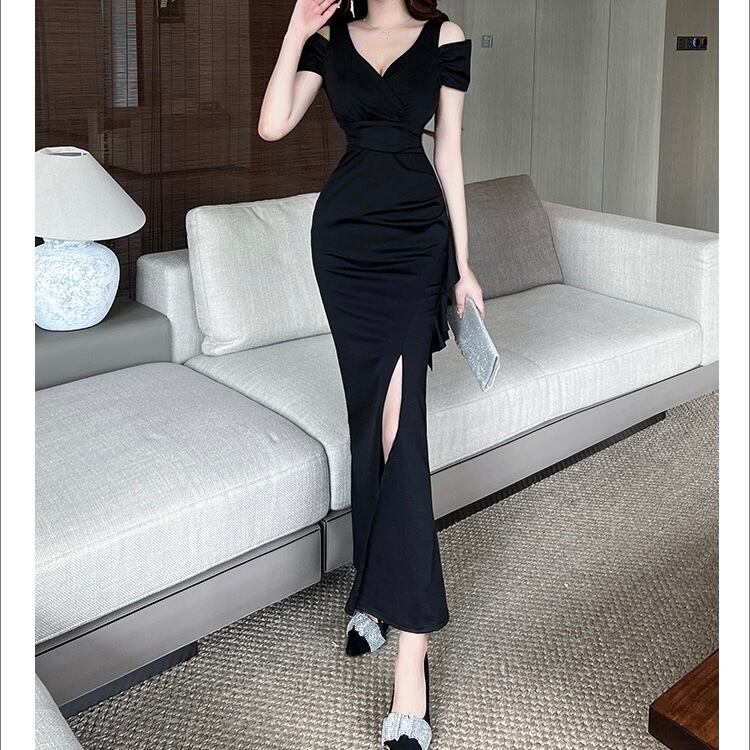 【レディース】パーティドレス Vネック タイト ロングドレス