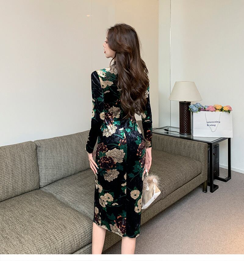 【レディース】パーティドレス ブラック チャイナ風ミディアムドレス