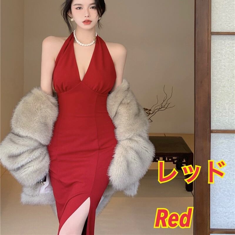 ネックホルダー タイト ロングドレス