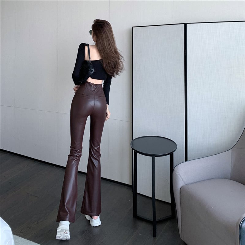 ボトムス スリムパンツ レザー風