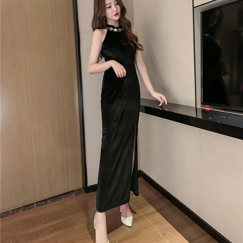 【レディース】パーティドレス ネックホルダー タイト ロングドレス